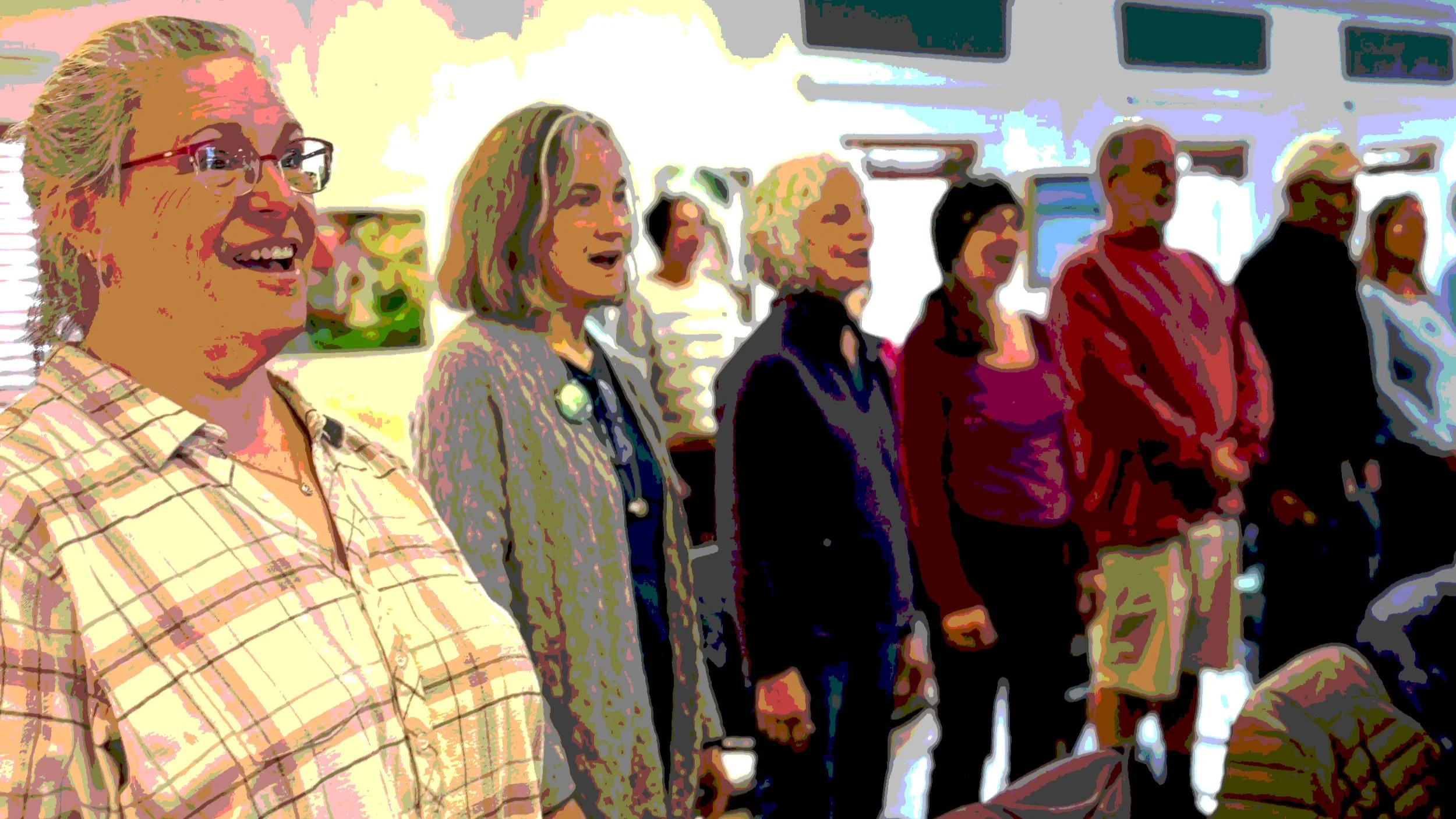 Each week, between 25 and 75 people of all ages and abilities show up for choir. Lisa Leopold, local music teacher, leads the group.